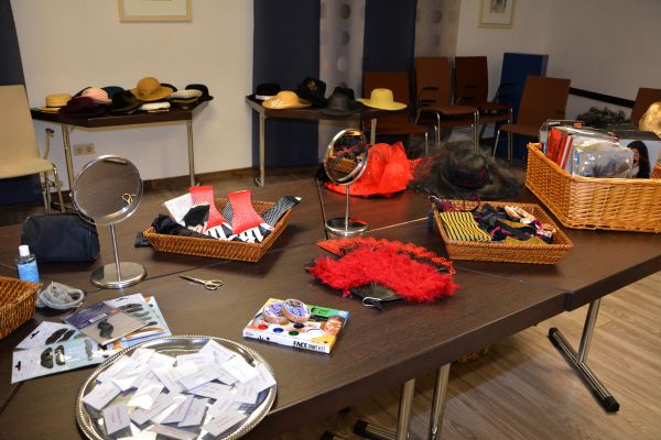 Es besteht die Möglichkeit einen Kostümfundus mit Accessoires zum Verkleiden anzumieten, er beinhaltet: Perücken, Hüte, Krawatten, Fliegen, Stolen, Federboas, Handschuhe, Schminke, Stoffe, Brillen, falsche Bärte, Fächer, vereinzelt Kostüme. Der Kostümfundus steht den Teilnehmern eine Stunde vor Spielbeginn zur Verfügung.